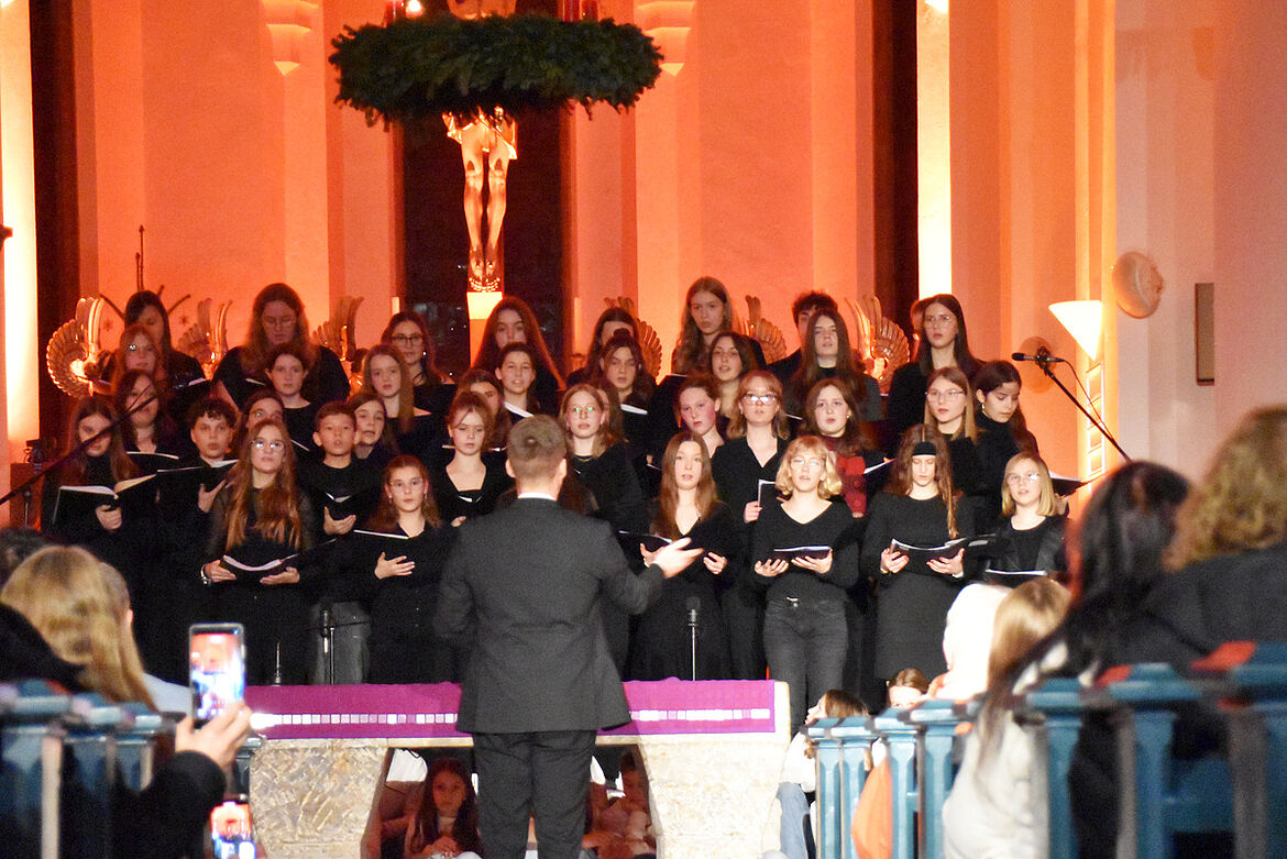 Der große Chor, der im vergangenen Jahr deutlich an Umfang gewonnen hat, stellte sich mit einem anspruchsvollen mehrstimmigen Werk wie dem Song „Carol of the Bells“ vor. Klanglich ausgewogen, präzise abgestimmt und mit beeindruckender Stimmfülle erfüllte der Chor den Kirchenraum und überzeugte durch einen kraftvollen Auftritt. Das Publikum, zahlreich erschienen, erlebte Musik auf bemerkenswertem Niveau.