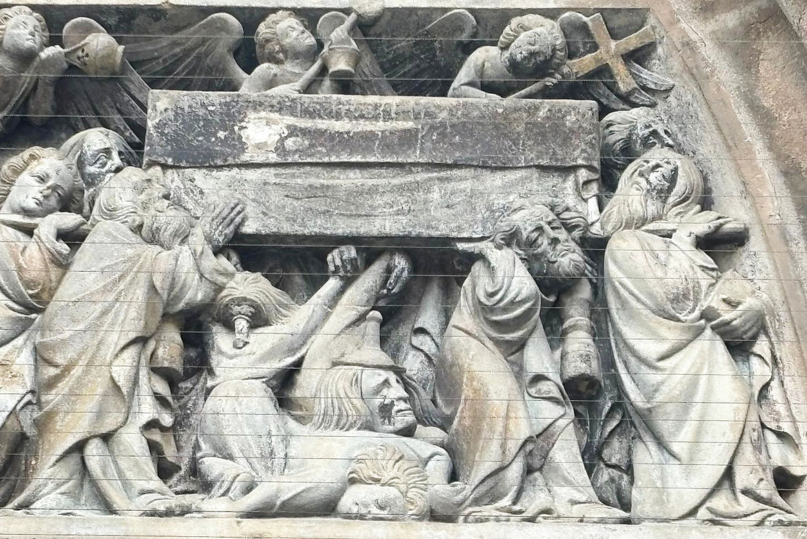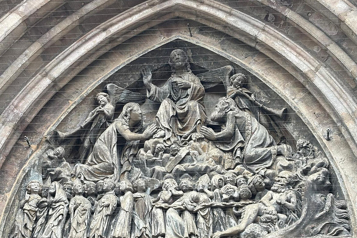 Zunächst betrachteten wir Figuren und Reliefs an der Außenfassade. Die Führerin erklärte, dass viele dieser Motive aus dem Mittelalter stammen und Ausdruck der damals verbreiteten antisemitischen Vorurteile sind. Auch im Inneren fanden sich Beispiele für solche Darstellungen. Dabei wurde betont, wie wichtig es ist, diese nicht zu verbergen, sondern kritisch zu erklären und als Mahnung zu nutzen.